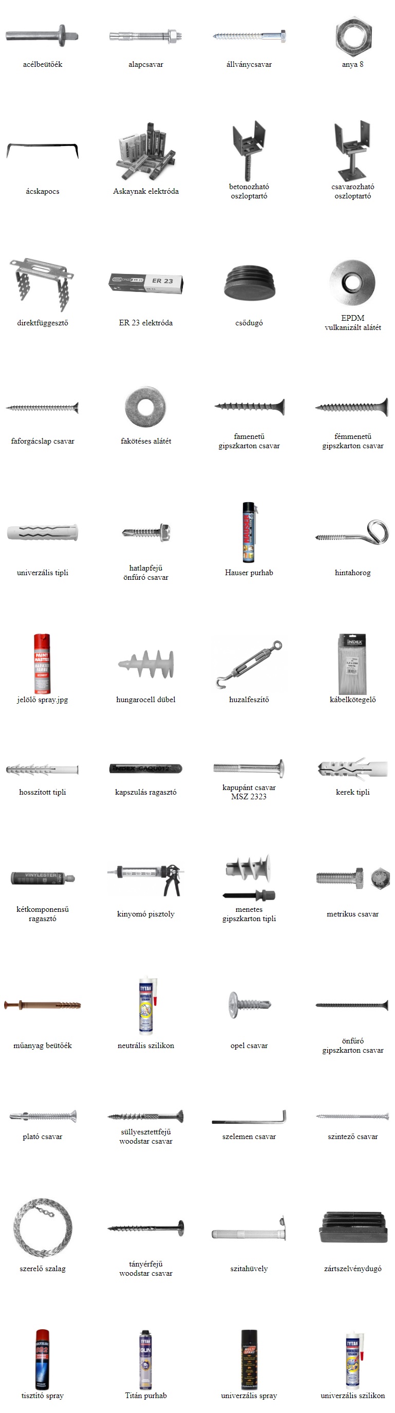Cégünk széles körben forgalmaz kötőelemeket, valamint rögzítéstechnikai árucikkeket.